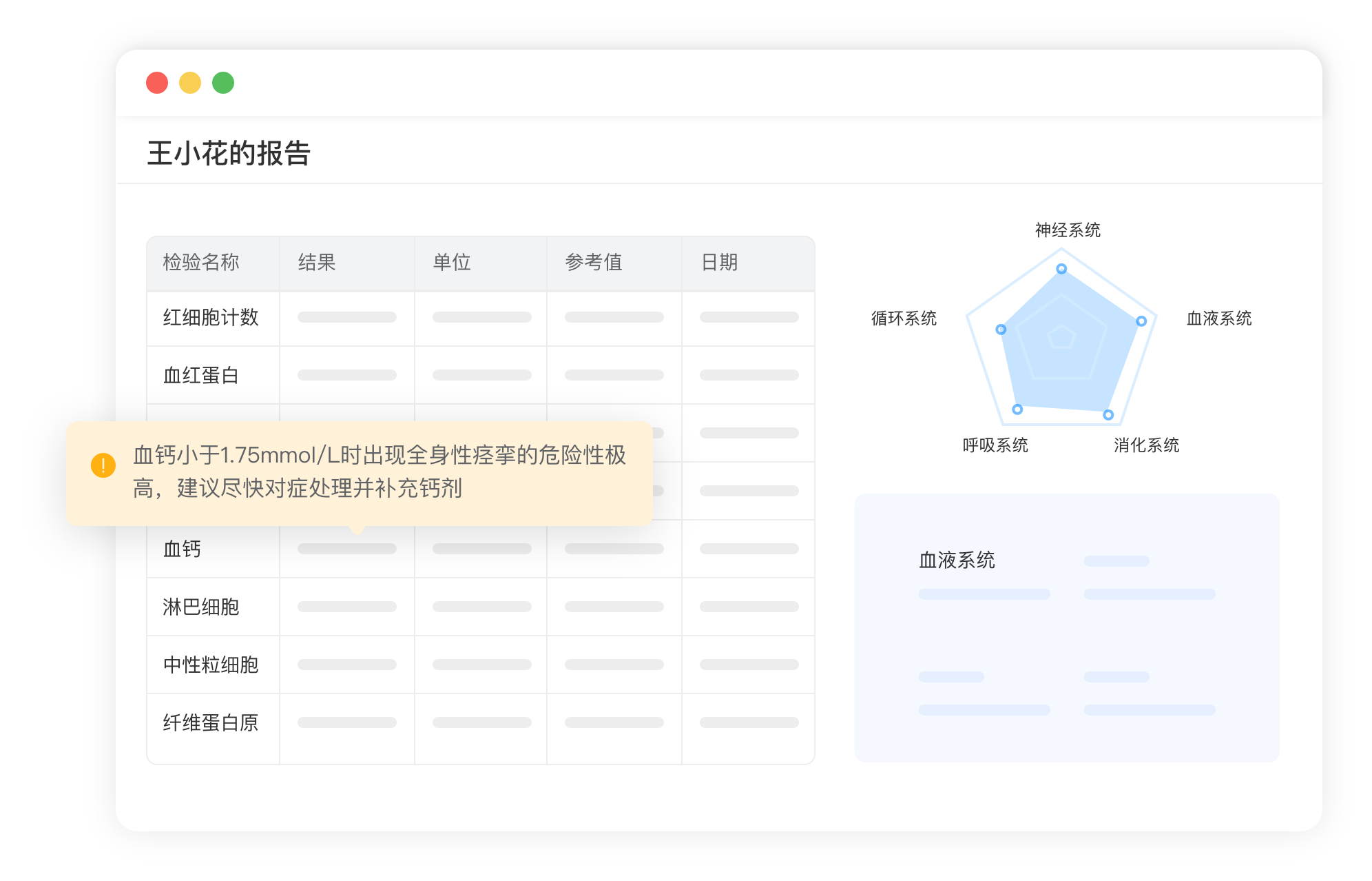慧检“应用商店”收录了由不同科研团队参与研发的诸如“血气分析”、“泛肿瘤”、胸腔渗出液、Grace评分等“疾病AI模型”和“专病分析工具”,为您提供24小时在线专病分析支持。AI实时分析病人病情和疑似问题,真正做到疾病的早发现、优诊疗。